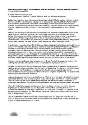 Imagining the Lectionary: Righteousness, risk and authority: exploring Matthew's passion (Proper 21A/Ordinary 26A)