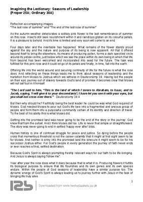 Imagining the Lectionary: Seasons of Leadership (Proper 25A; Ordinary 30A)