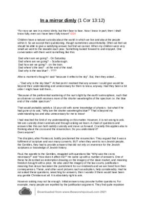 This reflection/short sermon (1155 words) considers the need to ask deep questions about our faith recognising that there may also not be clear answers. Such curiosity is seen as God given, but accepts that fuller answers will come later.