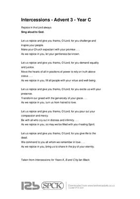 Rejoice in the Lord always Sing aloud to God. Let us rejoice and give you thanks, O Lord, for you challenge and inspire your people. Make your Church expectant with your promise . . . As we rejoice in you, let your gentleness be known. Let us rejoice and give you thanks, O Lord, for you demand equality and justice. Move the hearts of all in positions of power to rely on truth above status . . .