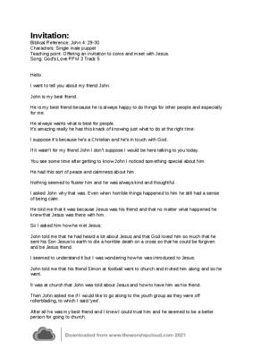 A Puppet sketch about being invited along by a friend and accepting the invitation