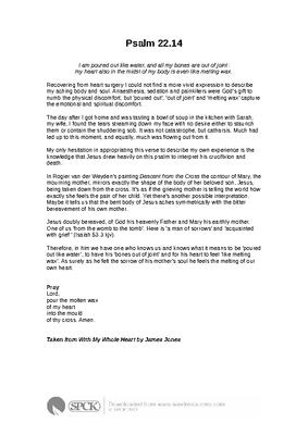 numb the physical discomfort; but ‘poured out’, ‘out of joint’ and ‘melting wax’ capture