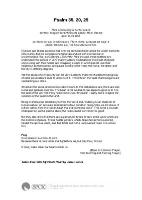 Civilized and liberal societies that over the centuries have tamed the wilder elements of humanity find the concepts of original sin and evil either unfamiliar or uncomfortable. But, as Golding’s Lord of the Flies showed, these realities lurk underneath the surface in very shallow waters. Civilization is the result of people communing with their hearts and imagining a world in which people love their neighbour as themselves. And peace comes to the heart, the home, the street and the city in differing degrees...