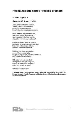 Poem, Joseph, Jacob, Reuben, sold into slavery, Midian. Greed, dreamer,