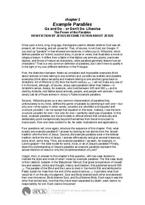 Once upon a time, long, long ago, theologians used to debate whether God was all- present, all- knowing, and all- powerful. That, of course, is not God, but Google. If you look up “parable” in that ethereal omniscience, it refers you to Wikipedia, which defines parable as “a brief, succinct story, in prose or verse, that illustrates a moral or religious lesson. It differs from a fable in that fables use animals, plants, inanimate objects, and forces of nature as characters, while parables generally feature human characters.” That is a very common definition of parables, but I cite it here to qualify it in the light of my own different definition in the Prologue...