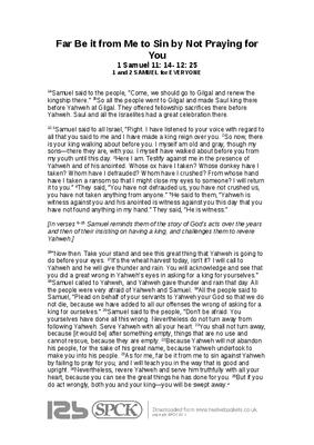 Far Be it from Me to Sin by Not Praying for You