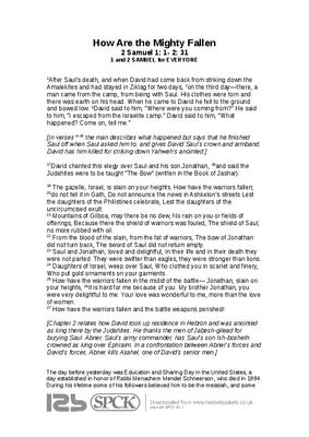 The day before yesterday was Education and Sharing Day in the United States, a day established in honor of Rabbi Menachem Mendel Schneerson, who died in 1994. During his lifetime some of his followers believed him to be the messiah, and some continue in that belief after his death. This year as in other years, on this day that commemorates him, a newspaper advertisement urges people to accept his kingship as messiah. It includes the explanation that “a Jewish king cannot declare himself king; he can only become king through the acceptance of the people.” It would be this acceptance that would lead to his resurrection and return as messiah. On a blog, someone commented, “Jewish kings don’t need the backing of the people to be declared king; all it takes is a bit of oil, a stream, and a prophet.”...