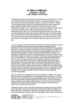 In Joshua, Judges, and Ruth for Everyone I referred to one of my students who spent last year preparing to get married but also developed increasingly intense headaches. A month or so before her wedding date she had an MRI that suggested a brain tumor. The doctors wanted to operate on it as soon as possible, though it was not clear what the result would be; she might still end up disabled in some way. Her family and friends urged the couple to bring the wedding forward, prayed for her incessantly, and helped them make the wedding happen over just one week. As she went for the surgery, her mother commented, “There is so much prayer going on, this tumor hasn’t a chance.” It was a fine comment, but of course life doesn’t work like that. Yet when the surgeons opened up her daughter’s head, they could find no tumor, only a messy blob. So they removed that, and sewed her up, and started scratching their own heads (meanwhile, she stopped having headaches). Was it a miracle? Was it a weird infection? Was it a virus she caught when scuba diving in Africa? The next theory was that it was the result of a slight hole in her heart that she has had since she was a baby, but then they couldn’t find much wrong with her heart. How does one think about the relationship between the way we understand things medically and the way we understand God’s involvement when something extraordinary happens?...