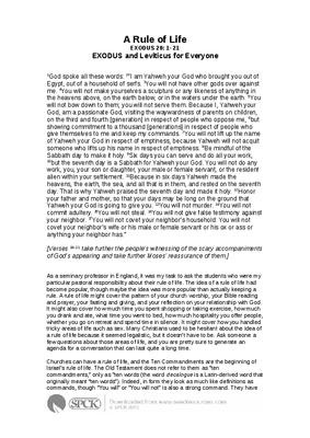 As a seminary professor in England, it was my task to ask the students who were my particular pastoral responsibility about their rule of life. The idea of a rule of life had become popular, though maybe the idea was more popular than actually keeping a rule. A rule of life might cover the pattern of your church worship, your Bible reading and prayer, your fasting and giving, and your reflection on your relationship with God. It might also cover how much time you spent shopping or taking exercise, how much you drank and ate, what time you went to bed, how much hospitality you offer people, whether you go on retreat and spend time in silence. It might cover how you handled tricky areas of life such as sex. Many Christians used to be hesitant about the idea of a rule of life because it seemed legalistic, but it doesn’t have to be. Ask someone a few questions about those areas of life, and you are pretty sure to generate an agenda for a conversation that can last quite a long time...