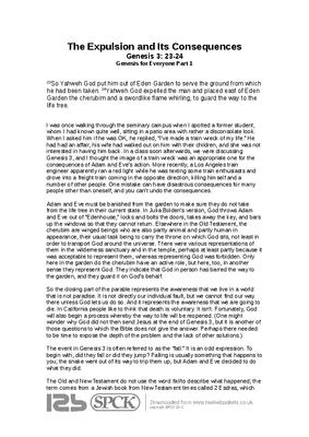 I was once walking through the seminary campus when I spotted a former student, whom I had known quite well, sitting in a patio area with rather a disconsolate look. When I asked him if he was OK, he replied, “I’ve made a train wreck of my life.” He had had an affair, his wife had walked out on him with their children, and she was not interested in having him back. In a class soon afterwards, we were discussing Genesis 3, and I thought the image of a train wreck was an appropriate one for the consequences of Adam and Eve’s action. More recently, a Los Angeles train engineer apparently ran a red light while he was texting some train enthusiasts and drove into a freight train coming in the opposite direction, killing himself and a number of other people. One mistake can have disastrous consequences for many people other than oneself, and you can’t undo the consequences...