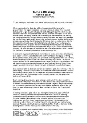 When my grandmother died, she left her legacy to be divided among her grandchildren. Her legacy was about two hundred pounds (about three hundred dollars), and we got about twenty pounds each. I bought two prints with it: one sits behind me as I write; the other sits near our bed. They still remind me of her. But in another sense her legacy is rather the excellent apple pie I remember her making, the help she gave to my mother (her daughter-in-law) when she was under pressure, the months I spent staying with her during a family emergency, and the family parties she gave every Boxing Day (the day after Christmas Day). In neither sense did she think about leaving a legacy, but she left one nevertheless. A few weeks ago, my physician asked me to update the form I had completed some years ago that tells health-care people about decisions to be made for you if you cannot make them for yourself. The form also asks how you would like to be remembered. I wrote, “He was not the kind of person who told people how to remember him.”...