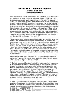 In lots of ways, words are powerful things. We can say things and wish we had not said them yet be unable to get out of their implications. A woman I know stood at the front of church and made her marriage vows, then subsequently discovered that her husband had concealed from her the fact that actually he was gay and was not interested in a proper marriage relationship; he had wanted to marry to make himself respectable in the setting of a homophobic church. She so wished she had never undertaken those vows that she had made through someone’s deceit, but she could not get out of them. She eventually got a divorce, but that did not exactly reinstate her as a single person in the eyes of her church or in her own eyes...