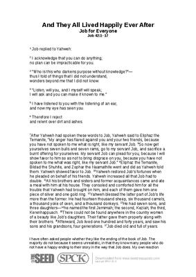 I have often asked people whether they like the ending of the book of Job. The majority do not because it seems unrealistic, in that they know many people who do not have a happy ending to their story in the way that Job does. My own reaction works the logic in the opposite direction. My first wife came to be disabled by multiple sclerosis and died as a result of the illness, and I don’t care to think of her story as simply ending in that way. I am glad that I know that her whole person will be renewed on resurrection day, and I am glad that the story of Job ends with Job restored. The very fact that so many people do not have a happy ending to their story is the reason why a story that has a happy ending is important—not because we are avoiding the toughness of the unhappy ending and fooling ourselves but because God is indeed one who brings stories to a happy ending. The Israelites did not know that their family members who died without a happy ending were going to get one on resurrection day, which makes the story’s statement of faith in the God of happy endings even more remarkable...