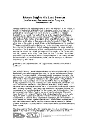 This coming Saturday, I am taking part in a service in which the Episcopal Diocese of Los Angeles expresses its regret and contrition for the way we have treated African Americans. The church to which I belong was founded to provide a place where the white members of the big church in town could send their black servants. It is not the only church in the diocese that made clear in the early twentieth century that black people were encouraged to go somewhere else, to form their own congregation. Hardly anyone alive today was personally involved in those events, yet they are part of our history. I was not even in Los Angeles until a decade or so ago, but by becoming part of the diocese I become part of its history, and I have to come to terms with it, not least because it continues to have its effect on the present. So I shall join in expressing “my” contrition for what “we” did a century ago. In Requiem for a Nun, part novel, part play, William Faulkner has one of his characters say, “The past is never dead. It’s not even past.” Faulkner dealt with overlapping themes in an earlier novel, Go Down, Moses; significantly, this novel concerned race relations in the United States. In a speech during his presidential campaign, Barack Obama took up these themes and in effect urged the people of the United States to decide that the time had come to let the past be the past. In what the Torah presents as the last, greatest, and certainly longest speech of his life, Moses begins by urging Israel not to forget its past...