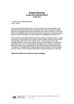 There is a play by Elie Wiesel called The Trial of God, set in a concentration camp and based on something the author witnessed at the end of the trial, God is found guilty of crimes against creation and humankind. After a period of silence, a Talmudic scholar who had taken part in the trial looks at the sky and says, “It’s time for evening prayers,” and the members of the tribunal recite the synagogue evening service...