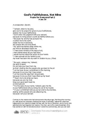 Contrary to the resolve she had announced a few days ago, first thing this morning my wife sat at her computer checking the news. Eventually I asked her what had happened to her resolve to begin the day with her time of devotion, and in horror she admitted she had forgotten her resolve. She then went off to make breakfast. (She has carried on with her devotions since I wrote this commentary, and you can work out from the acknowledgments section that I would not be including this information without her cooperation, and that she thus did not perceive me as being passive-aggressive.) It is just as well that the relationship between God and us does not depend on our faithfulness as much as it depends on God’s, and my wife knows that fact and trusts in it, in a good way. It would be possible for us to take God’s faithfulness for granted and not feel compelled to be faithful. In contemporary Western Christianity as I experience it, our more prevalent danger is the assumption that our faithfulness determines whether God is faithful, that God relates to us in response to our relating to him...