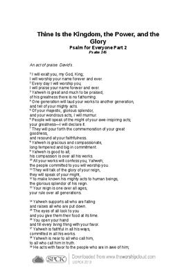 A student once asked me why the Lord’s Prayer is so different from the prayers in the Psalms, which characteristically cry out to God and issue protests to God because of people’s urgent needs. I wasn’t sure, but in due course I worked out what I thought was quite an impressive answer relating to the context of the Lord’s Prayer in Jesus’ ministry. But I won’t bother you with it because I have now realized it was mostly mistaken. The Lord’s Prayer is indeed different from the protest psalms, but it is quite like other psalms that focus more on praise...