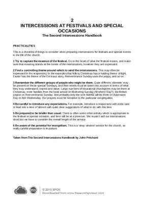 This is a checklist of things to consider when preparing intercessions for festivals and special events in the life of the church…