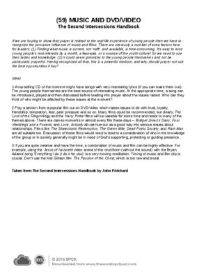 If we are hoping to show that prayer is related to the real-life experience of young people then we have to recognize the pervasive influence of music and films. There are obviously a number of extra factors here for leaders. (1) Finding what music is current, not ‘naff’, and available, is time-consuming. It’s easy to miss young people’s real interests by a month, a faux-pas, or a nuance of the youth culture! So we need to use their tastes and knowledge. (2) It could seem gimmicky to the young people themselves and not be particularly prayerful. Having recognized all that, this is a powerful medium, and why should prayer not use the best opportunities it has?