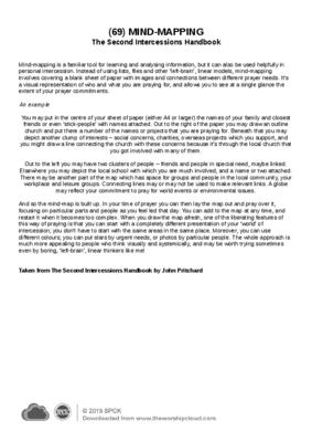 Mind-mapping is a familiar tool for learning and analysing information, but it can also be used helpfully in personal intercession. Instead of using lists, files and other ‘left-brain’, linear models, mind-mapping involves covering a blank sheet of paper with images and connections between different prayer needs…