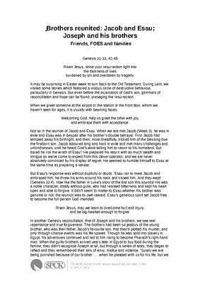 Brothers reunited: Jacob and Esau; Joseph and his brothers