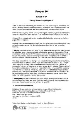 Gaze on the victim in this story, the traveller who has been mugged and beaten and left in a stinking alleyway, bleeding and sore, miles from home. Imagine you are that victim. Someone comes near and hears your moans. He peers down at you...