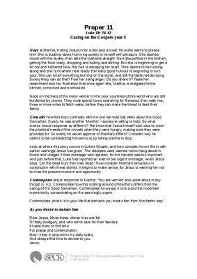 Gaze at Martha, inviting Jesus in for a rest and a meal. How she wants to please him! She is bustling about humming quietly to herself with pleasure. She dashes round with the duster, then sets the cushions straight. Next she potters in the kitchen, getting the food ready, chopping and boiling and stirring. But she is beginning to get a bit hot and bothered now. Her hair is escaping her scarf. Time seems to be rushing along and she is nowhere near ready. Her early good humour is beginning to turn sour. She can smell something burning on the stove, and still the table needs laying. Surely Mary can do that? Feel her rising anger. Do you share it? Taste her resentment and her frustration that once again she, Martha, is relegated to the kitchen, unnoticed and overlooked...