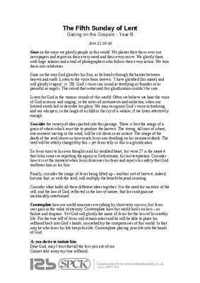 Gaze on the way God glorifies his Son, as he breaks through the barrier between heaven and earth. Listen to the voice from heaven: ‘I have glorified [his name] and will glorify it again’ (v. 28). God’s voice can sound as terrifying as thunder or as peaceful as angels. The crowd that witnessed this glorification couldn’t be sure...