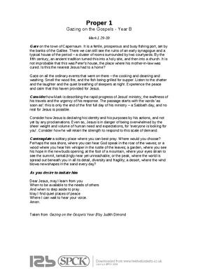 Taken from Gazing on the Gospels Year B by Judith Dimond