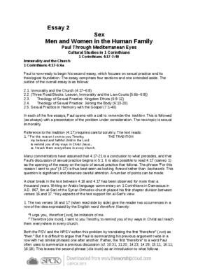 Paul is now ready to begin his second essay, which focuses on sexual practice and its theological foundation. The essay comprises four sections and one extended aside. The outline of the overall essay is as follows: