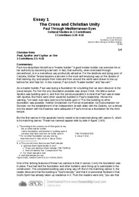 Christian Unity Paul, Apollos and Cephas as One (2) cntd.