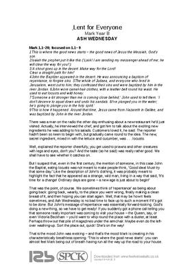 Taken from Lent for Everyone Mark Year B by Tom Wright
