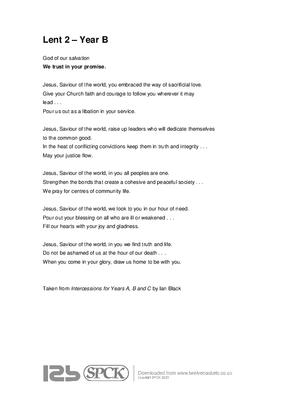 God of our salvation We trust in your promise. Jesus, Saviour of the world, you embraced the way of sacrificial love. Give your Church faith and courage to follow you wherever it may lead . . .