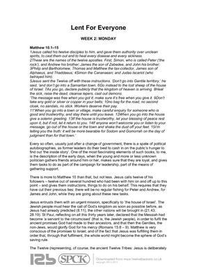 Every so often, usually just after a change of government, there is a spate of political autobiographies, as former leaders do their best to cash in on the public’s hunger to find out ‘the inside story’. One of the most fascinating elements of such books, to me, is the description of the early days, when the young and more or less unknown politician gathers friends around him or her, makes sure that they are loyal, and gives them tasks to do as part of the campaign for leadership, part of the means of gathering support. There is more to Matthew 10 than that, but not less. Jesus calls twelve of his followers – twelve out of several hundred...