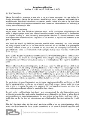 I know that this letter may come as a surprise to you as it is now some years since we studied the healing arts together. I know that we swore we would keep in touch. I believe we both hoped that it would be more than the occasional note to report yet another change of location as the Lord led us to fresh challenges. But I have just witnessed the most remarkable series of events and something is