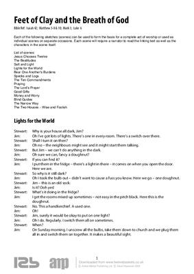 Each of the following sketches (scenes) can be used to form the basis for a complete act of worship or used as individual scenes on separate occasions. Each scene will require a narrator to read the linking text as well as the characters in the scene itself.