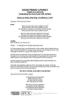 We gather in the chairs by the font. Hymn Were you there when they crucified my Lord? Were you there when they crucified my Lord? Oh, sometimes it causes me to tremble, tremble, tremble. Were you there when they crucified my Lord? Were you there when they nailed him to the tree? Were you there when they nailed him to the tree? Oh, sometimes it causes me to tremble, tremble, tremble...