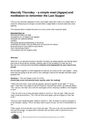 Maundy Thursday – a simple meal (Agape) and meditation to remember the Last Supper