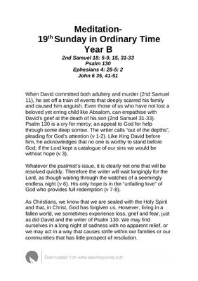 2nd Samuel 18: 5-9, 15, 31-33 Psalm 130 Ephesians 4: 25-5: 2 John 6 35, 41-51