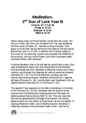 When Jesus cried out those terrible words from the cross, “My God, my God, why have you forsaken me?” he was speaking the first verse of Psalm 22 - actually a song of praise - that goes on to tell that “all the families of the nations will bow down before the Lord.” (v 27-28). It was the act of Jesus, dying on the cross for our sins that would make possible the fulfilment of the promise, not only of the Psalm, but of the covenant made centuries before with Abraham...