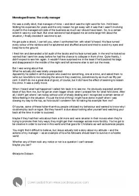 Monologue/Drama: The crafty manager