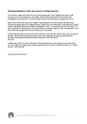 Monologue/Meditation: Faith is the assurance of things hoped for…