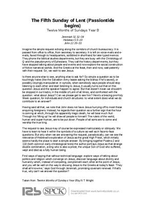 Taken from Twelve Months of Sundays Year B by N T Wright