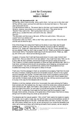 Taken from Lent for Everyone Mark Year B by Tom Wright