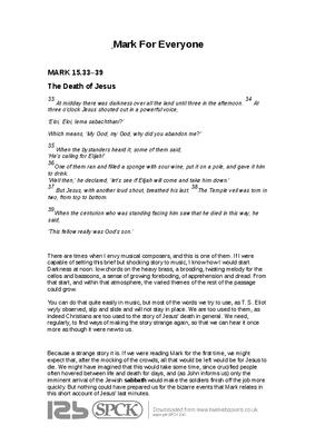 You can do that quite easily in music, but most of the words we try to use, as T. S. Eliot wryly observed, slip and slide and will not stay in place. We are too used to them, as indeed Christians are too used to the story of Jesus’ death in general. We need, regularly, to find ways of making the story strange again, so that we can hear it once more as though it were new to us...