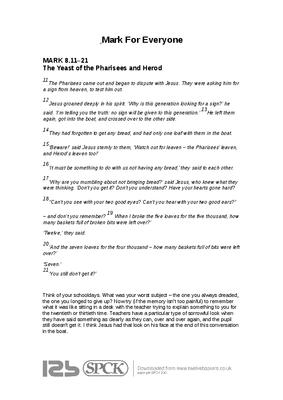 What’s more, he knew it was important that they learn the lesson sooner rather than later. Things were hotting up. Right on cue, the Pharisees appear and ask for a sign – as though what Jesus had just been doing wasn’t a substantial sign in itself. What sort of a sign are they wanting? What does Jesus read into it...