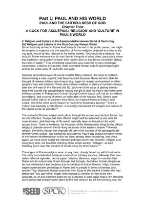 A COCK FOR ASCLEPIUS: ‘RELIGION’ AND ‘CULTURE’ IN PAUL’S WORLD