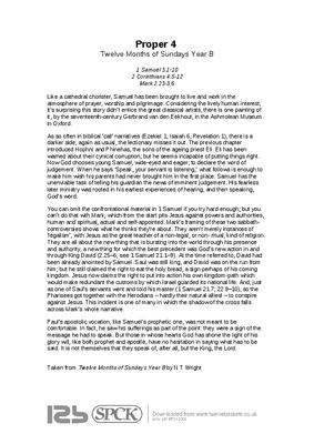 Taken from Twelve Months of Sundays Year B by N T Wright