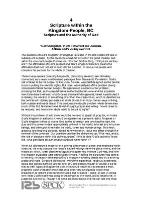 The question of God’s ‘kingdom’ or ‘kingship’ is raised, in the Old Testament and in subsequent Judaism, by the presence of radical evil within the good creation and within the covenant people themselves. How can God be King, if things are as they are? The affirmation of God’s present and future kingdom therefore means the affirmation that God will act to deal with the problem, to rescue his people and complete his purpose for the whole of creation...
