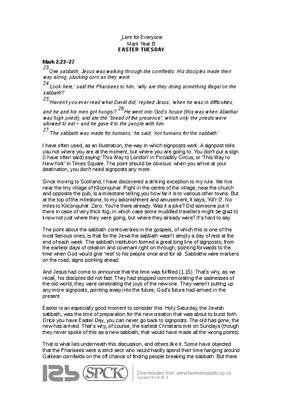 Taken from Lent for Everyone Mark Year B by Tom Wright